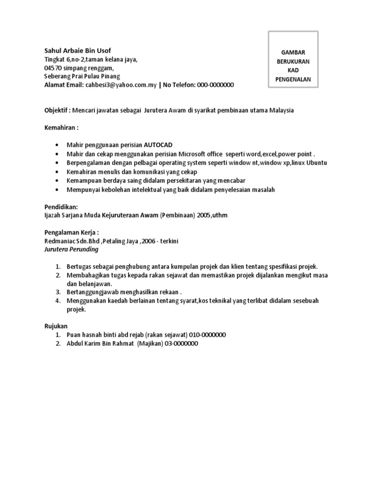 Kronologis fungsional dan kombinasi keduanya. Resume ditulis singkat padat dan jelas. Jurutera Awam Pembinaan Contoh Resume.